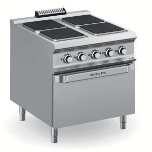 Forno elettrico: dotato di resistenze corazzate in acciaio inox da 6 kW posizionate sul fondo e sul cielo della camera di cottura; regolazione termostatica della temperatura con doppio controllo separato fondo/cielo per una massima flessibilità di cottura. Reggigriglie per 3 GN 2/1.