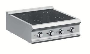 Nelle versioni con funzionamento elettrico (14 kW), la piastra di cottura è unica ma presenta 4 zone di cottura con controllo indipendente.