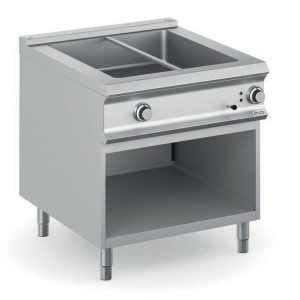 Le pareti della vasca e l’intercapedine sono in AISI 304 mentre il fondo è in AISI 316 per una maggiore resistenza alla corrosione. Il coperchio in AISI 304 assicura minime perdite di vapore e calore (disponibile anche coperchio doppio isolamento come accessorio per garantire migliore isolamento termico). Rubinetto di carico acqua calda e fredda con erogatore snodabile posto sul piano di lavoro.