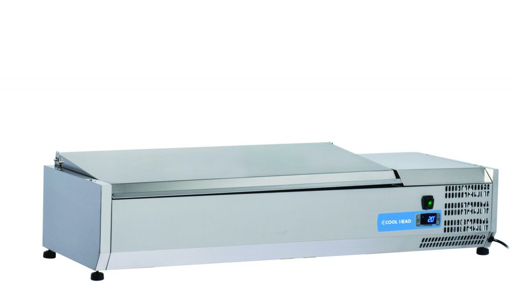 VETRINA REFRIGERATA PER PIZZA CON COPERCHIO ACCIAIO INOX +2/+8° – 1200x395x281 – 3xGN1/3 + 1xGN1/2